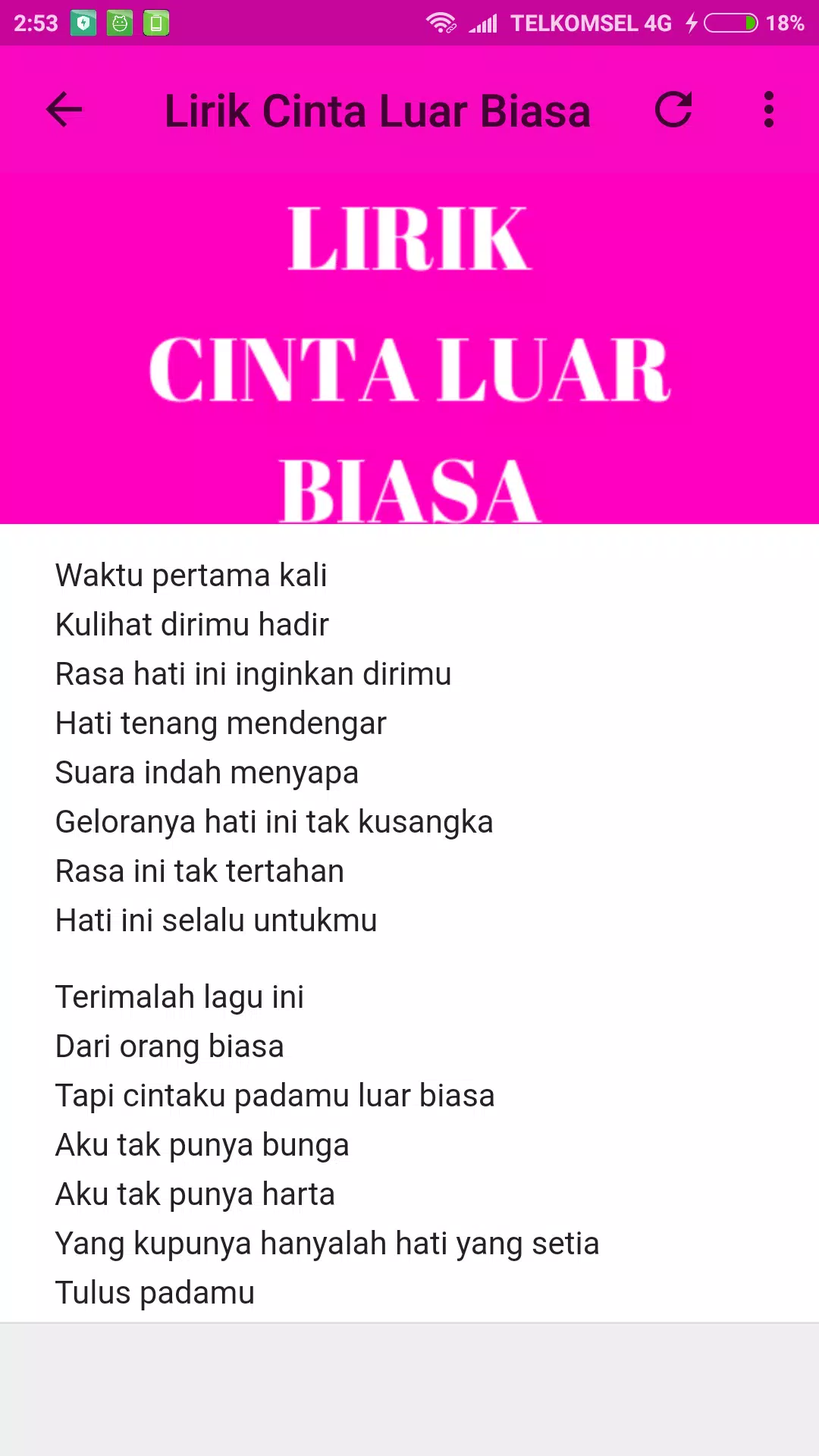 Tapi cintaku padamu luar biasa. Lelaki yang bersahaja ini merupakan. Lirik Andmesh - Cinta Luar Biasa Eksklusif LirikLirik lagu dari Andmesh dengan judul Cinta Luar BiasaOfficial Video.